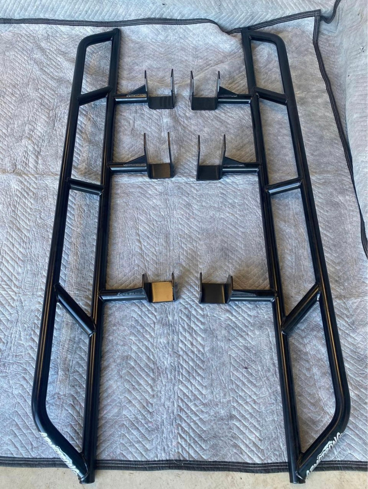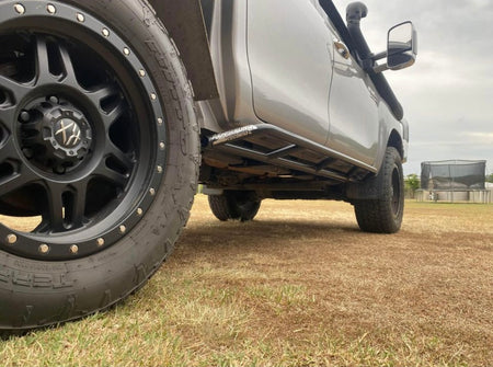 All angled (20°) rock sliders are made from 42mm round tube, 3.2mm thick