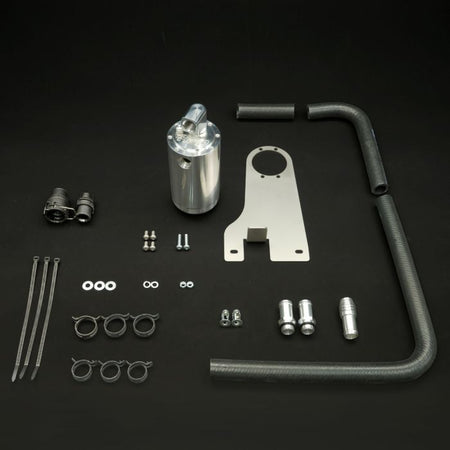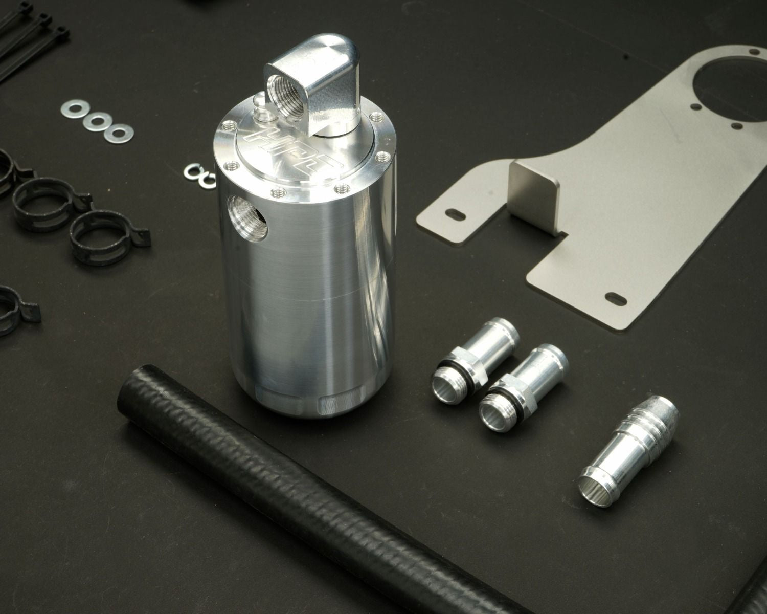 HPD’s oil catch can / oil separators come in universal and complete kits with all required stainless steel laser cut bracketry, correct size hose tail fitting, washable internal stainless mesh filters, cut to size oil resistant hosing, bolts, nuts, washer, spring clamps and installation instructions for each vehicle.