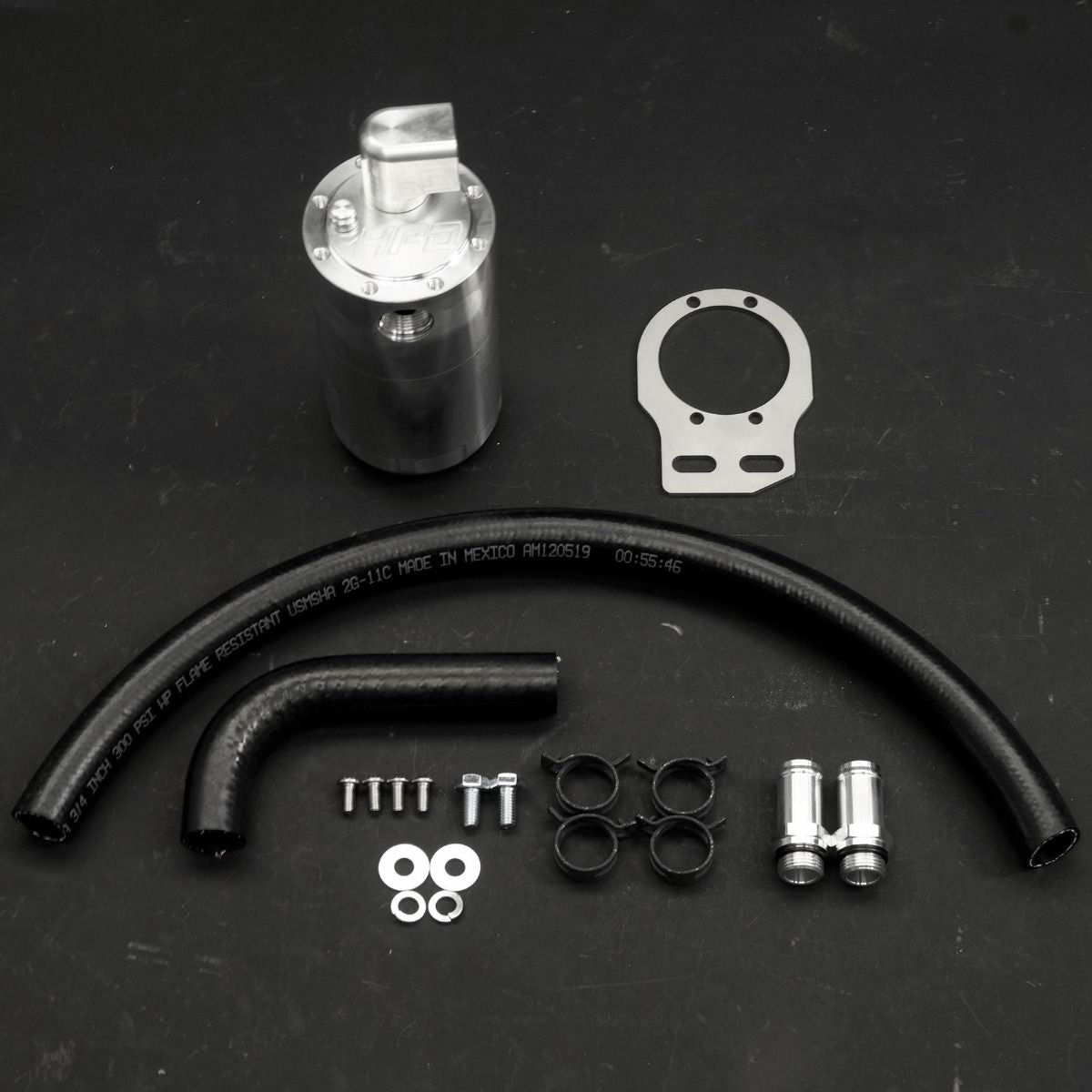 HPD’s oil catch can / oil separators come in universal and complete kits with all required stainless steel laser cut bracketry, correct size hose tail fitting, washable internal stainless mesh filters, cut to size oil resistant hosing, bolts, nuts, washer, spring clamps and installation instructions for each vehicle.