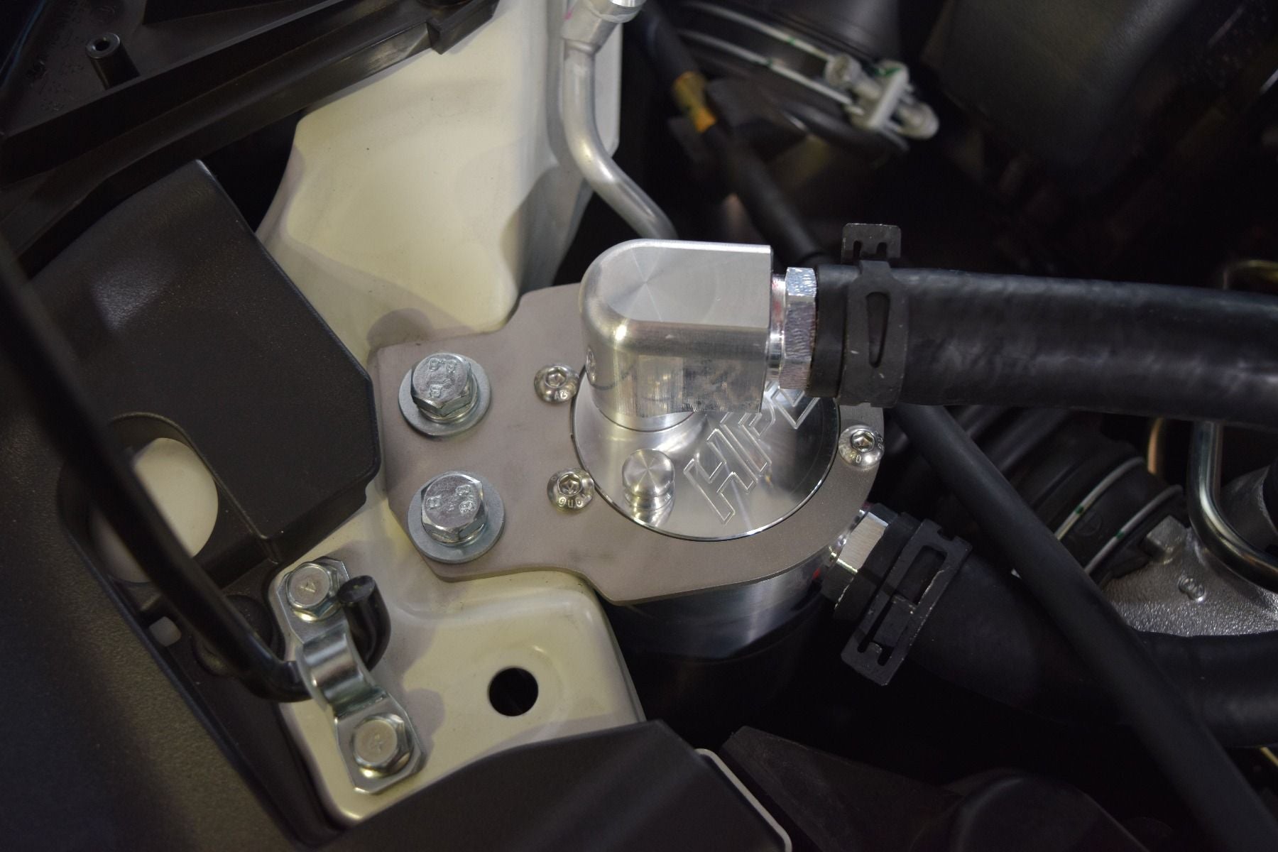The HPD direct bolt on separator kits are ideal for 4WDs running an intercooler or turbo kit and they come complete with mounting brackets, rubber hoses and hose clamps. The separators eliminate oil vapour that can contaminate the intake system and therefore helps keep the intercooler clean (internally). This translates into more efficient cooling and better power delivery from your engine.