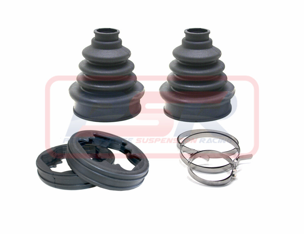 Designed to reduce the common wear issue caused by the convolutes of the boots rubbing against themselves on vehicles with a lift kit. Boots are supplied with a coupler to secure to the inner joint with either OE tripod style or aftermarket round housings. Paired with our High Clearance Outer CV Boots and PSR Diff Drop this will greatly improve the longevity of your CV joints.