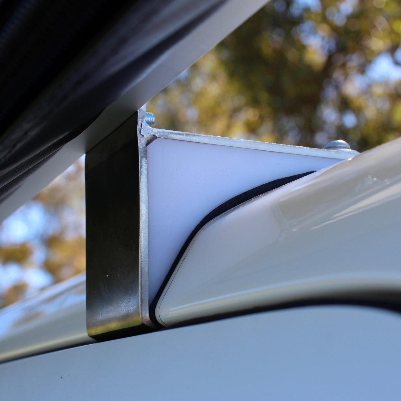 Get summer ready with our patented design! Our Awning Brackets feature slotted bolt holes to suit most brand straight out awnings. The HDPE/PETG blocks are shaped specifically to the contour of your car roof, giving the 304 grade stainless steel brackets a seamless finish. Our Roof Mounts, which sit in the vehicle roof gutter permanently for watertightness, permit quick and easy removal of the brackets when necessary. And for added peace of mind, this kit comes complete with HD foam and paint protection strips for the prevention of wear.
