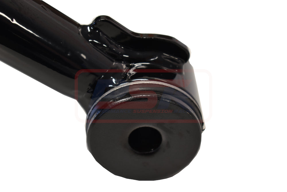 Arms come with PSR's extended ball joint and feature full reusability and can be replaced later in life. Ball Joint boot is a small diameter to reduce coil tower contact unlike other brands which tears, allowing dirt and water into the joint promoting premature failure! Supplied with an Australian made polyurethane inner pivot bush and powder-coated black these arms are a perfect solution for your D23/NP300 that has a camber issue or are needed for extra lift or both.